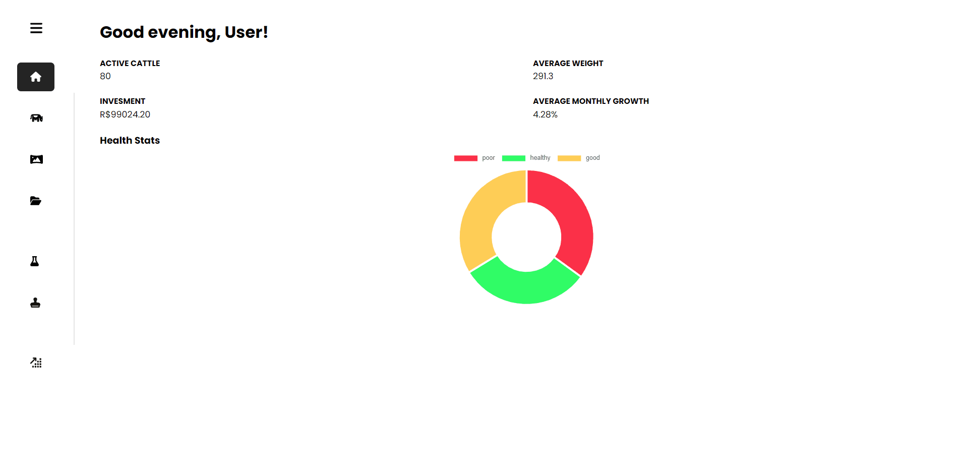 - Visualize averages: Active cattle weight and monthly growth, enabling farmers to quickly assess herd health and productivity.